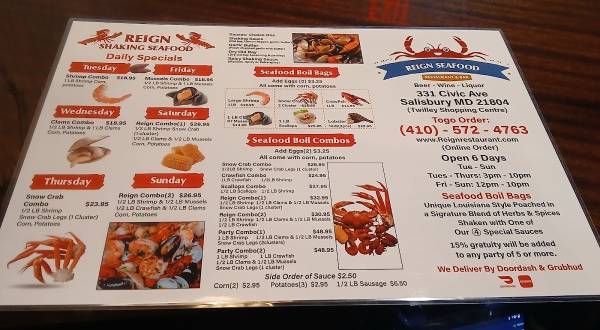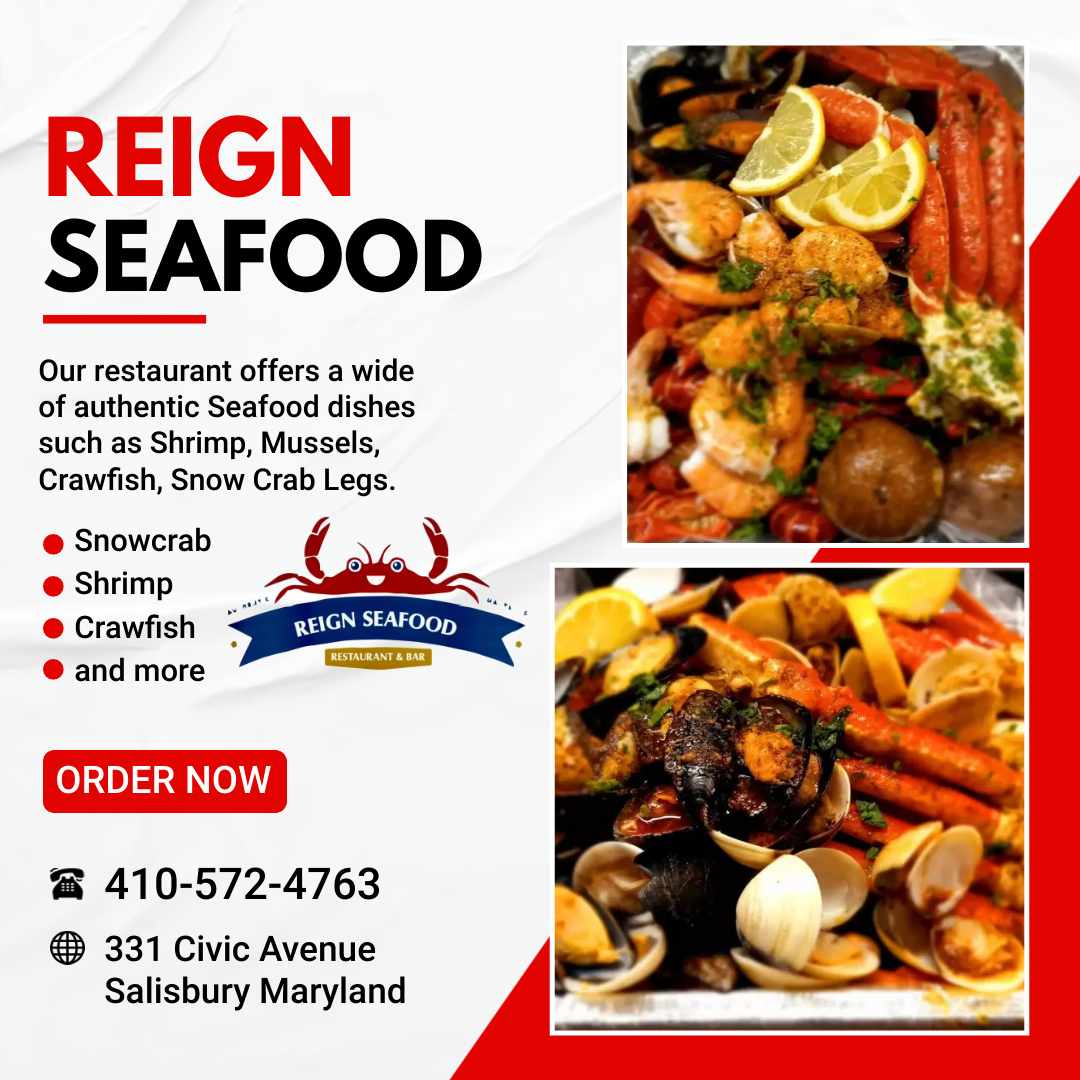 Located at 331 Civic Ave in Salisbury, MD, Reign Restaurant and Bar offers a delightful seafood experience that captivates diners with its extensive and mouthwatering menu. The fried appetizers, such as the Flounder and Shrimp Baskets, are perfect for sharing, while the calamari rings bring a crisp and flavorful twist.